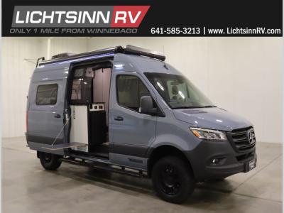 The Revel Class B diesel motorhomes allows you to venture off-road thanks to the AWD Sprinter chassis with 2.0L high-output turbo-diesel 4-cylinder under the hood. The Winnebago Power MAX system (8.4kWh Lithionics lithium-ion battery with dual alternator charging capability) and Power Hub Pro which is an exclusive 5-in1 system that delivers off-grid power like nothing before allowing you to stay off-grid for a few days. The interior provides a comfortable and relaxing space featuring modern decor including an updated galley with counter extension cover, a new wall-mounted table, an innovative wet bath, plus a power lift bed with WinnSleep® mattress technology, and the gear garage below the bed features L-track bases for secure and flexible storage, plus cabinet storage and more.
